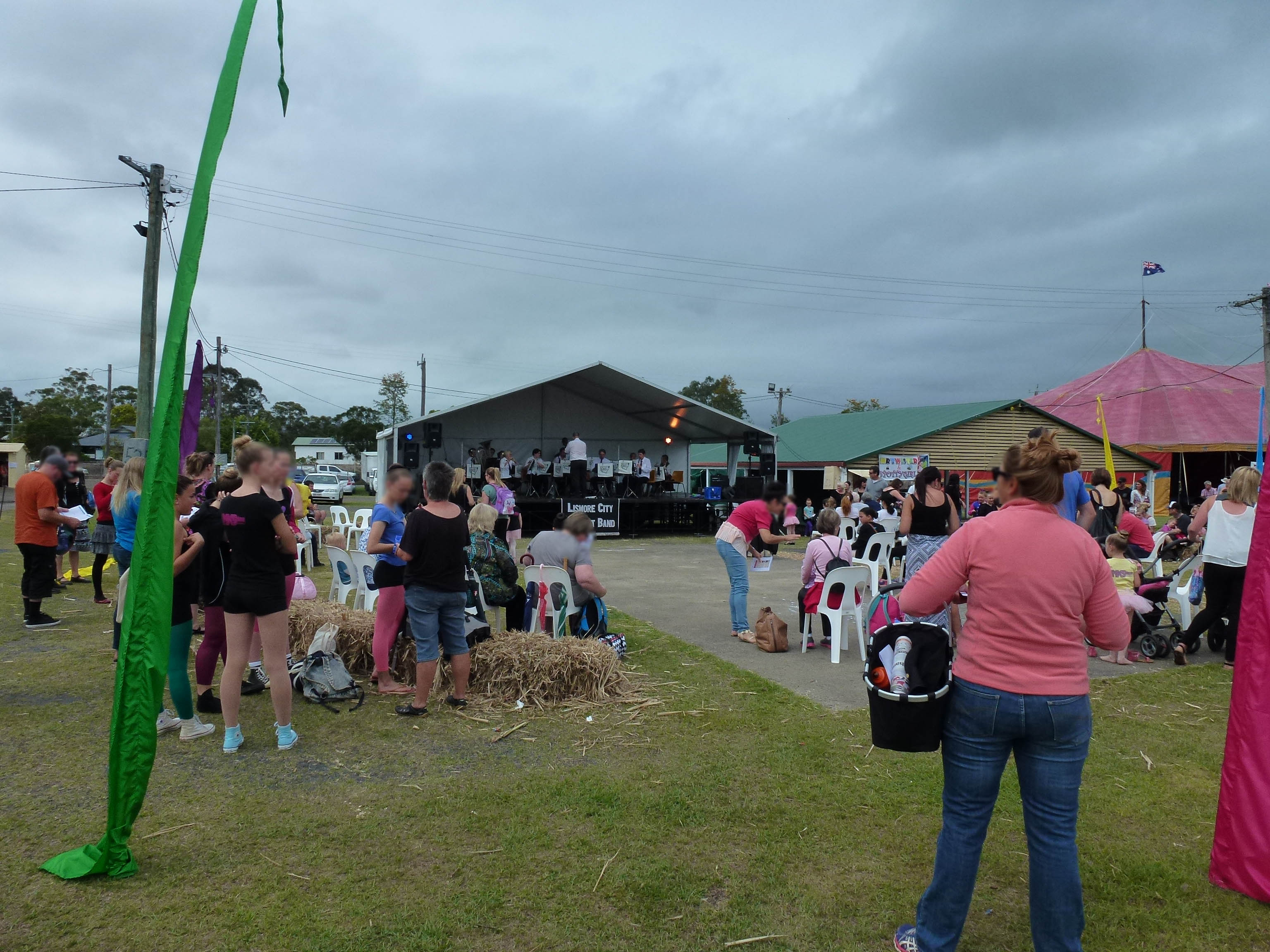 It was a bit of a drizzly day down at the showgrounds, but other than a light sprinkle half way through playing Liberty Bell the rain mostly held off for us until after we had finished. We were on early in the morning and started off to a quiet audience however as the music came, so did the crowd.